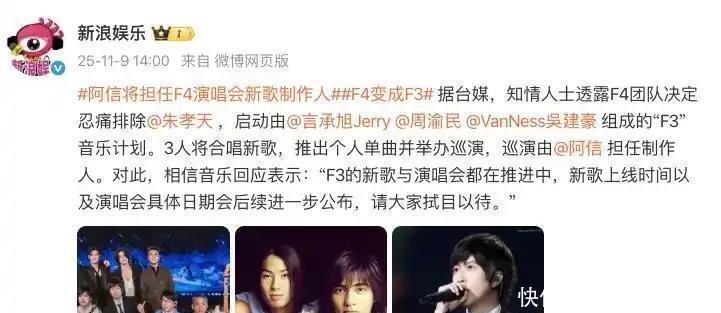 事情的转折点,藏在朱孝天的直播间里。那人穿着件旧T恤,语气轻飘飘地讲:其实不想来,跟其他三人根本不熟,平时也没联系,都九年没说话了。这话一出,粉丝愣了,队友更沉默。偏偏他还一边说不熟,一边把合体细节全抖了出来——新专辑、巡演计划,连阿信怎么劝他的过程都讲得清清楚楚。这下好了,团队直接叫停巡演,11月9日的新闻一出,“F4”成了“F3”,少了的那一个,名字都没提,但大家都知道是谁。
